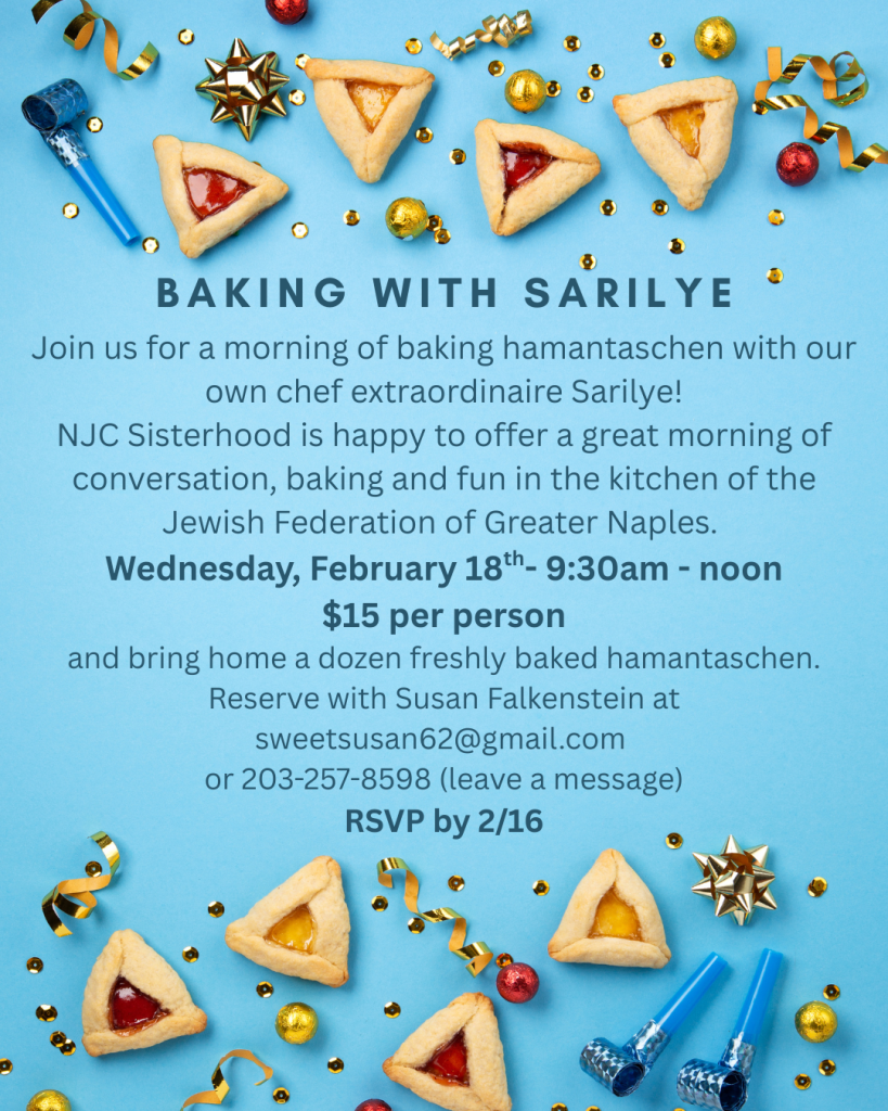 Wed., Feb. 18 -9:30am – noon – Hamantaschen Baking